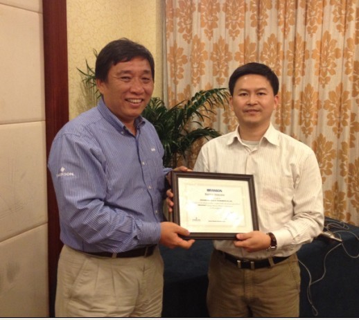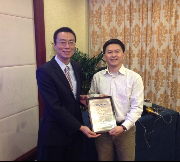 2012年12月3日,上海恒奇儀器儀表有限公司左克唯總經(jīng)理,受邀參加了美國必能信(BRANSON)在南京湯山舉辦的“2012年必能信全國商業(yè)產(chǎn)品代理商大會”,并且接受美國必能信(BRANSON)大中國區(qū)銷售總監(jiān)黃健宏頒發(fā)的“2012年華東區(qū)優(yōu)秀代理商獎”,以表彰恒奇公司在2012年所取得優(yōu)秀的銷售業(yè)績。隨后接受了由必能信亞太區(qū)產(chǎn)品經(jīng)理蕭逸群頒發(fā)的2013年必能信產(chǎn)品代理證書。
