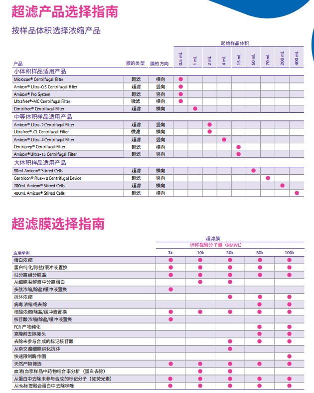 • Amicon Ultra超濾管滿足從0.5-15mL樣本的處理