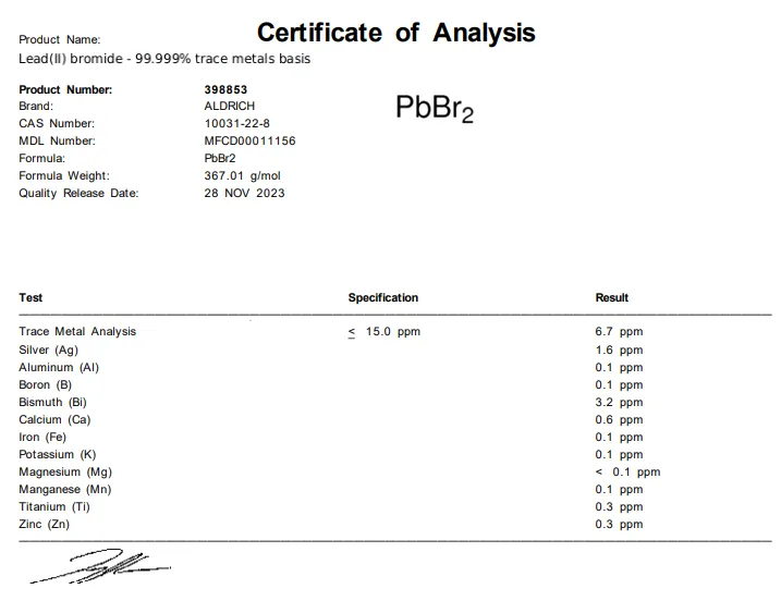 溴化鉛(II) | 398853 | 99.999% trace metals basis |