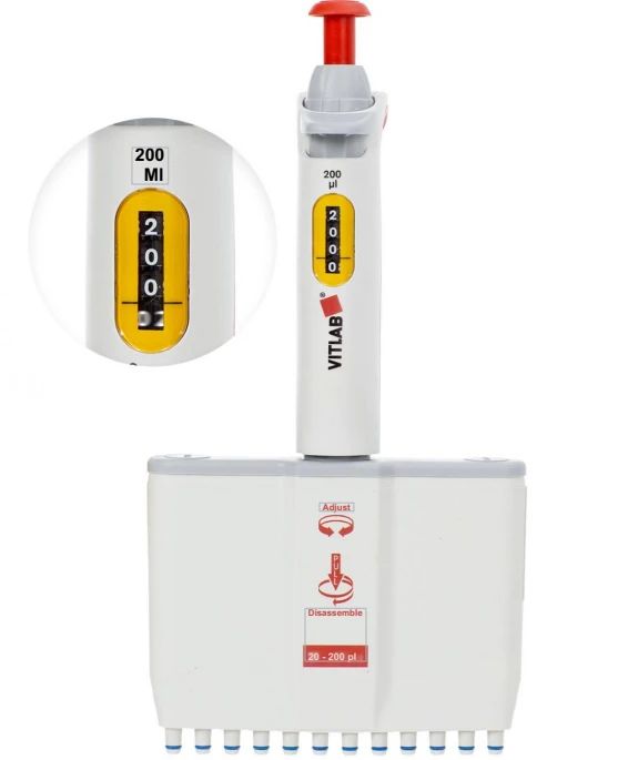 VITLAB® micropipette微量移液器具有放大功能的數(shù)字窗能夠直觀顯示四位數(shù)字,體積設(shè)定可精確到千分之一分度微調(diào)。