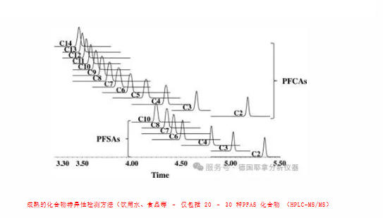 PFAS檢測不僅要求分析方法具備極高的靈敏度,能夠識別痕量物質,還需應對其種類繁多(超過10000種)帶來的覆蓋難題。目前常用的化合物特異性檢測技術(如HPLC-MS/MS)通常僅能涵蓋20至30種PFAS物質,難以實現全面篩查。