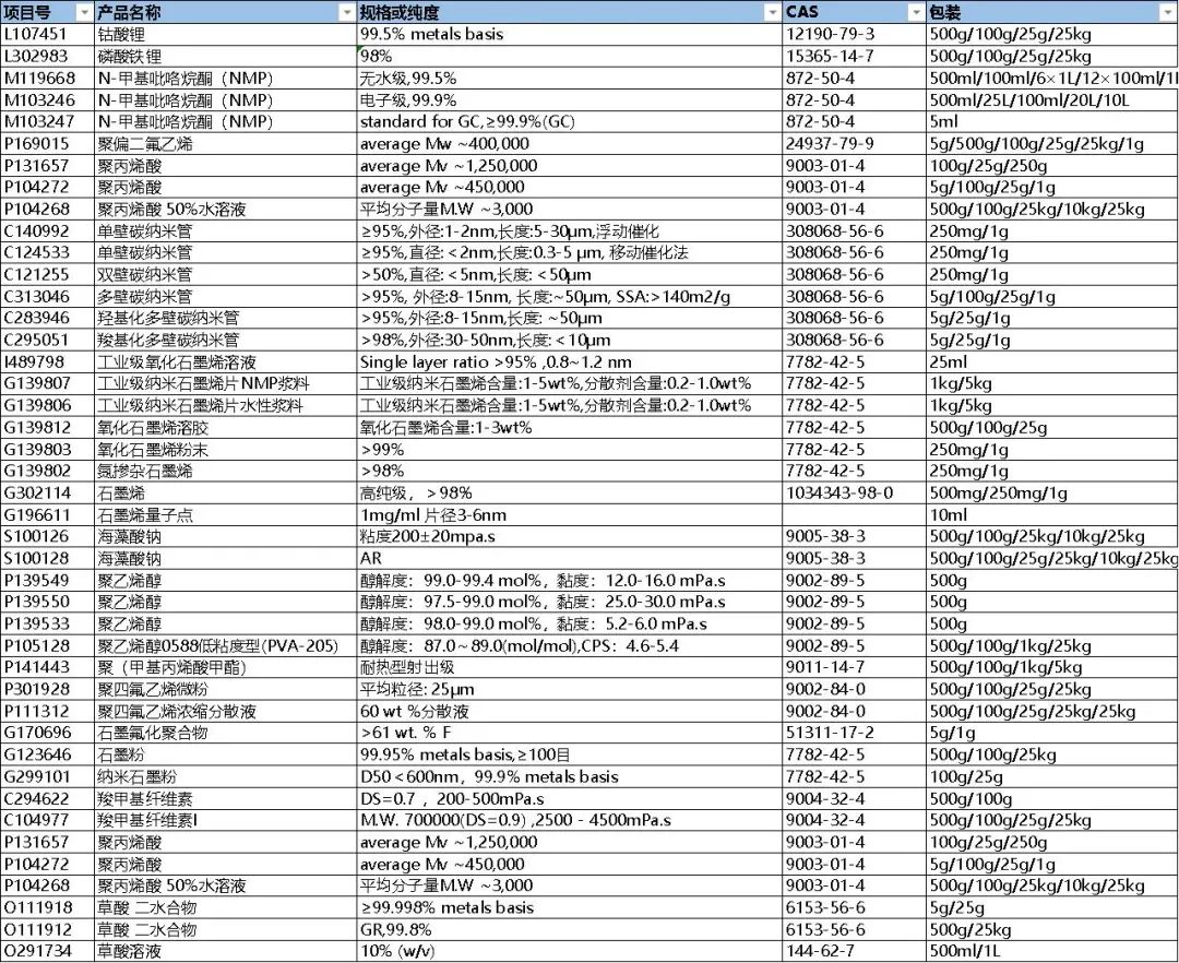 因為,阿拉丁的鋰離子電池相關(guān)原材料: