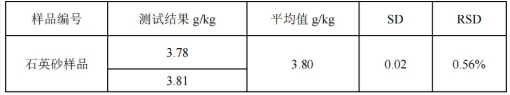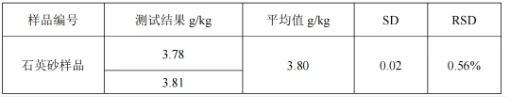 表 4-4 高純石英砂樣品碳測試結果