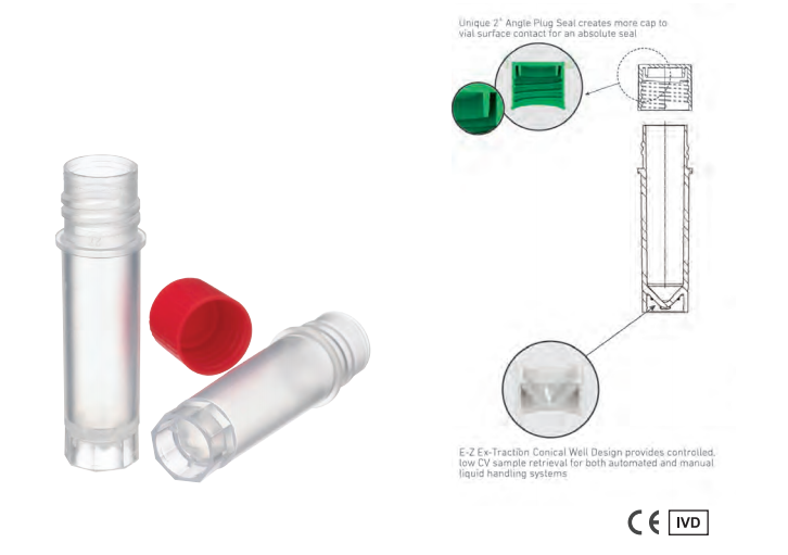 瓶蓋密封性遠超了DOT和IATA法規(guī)標準,確保了在運輸和嚴苛的冷凍解凍處理過程中對樣品的保護;